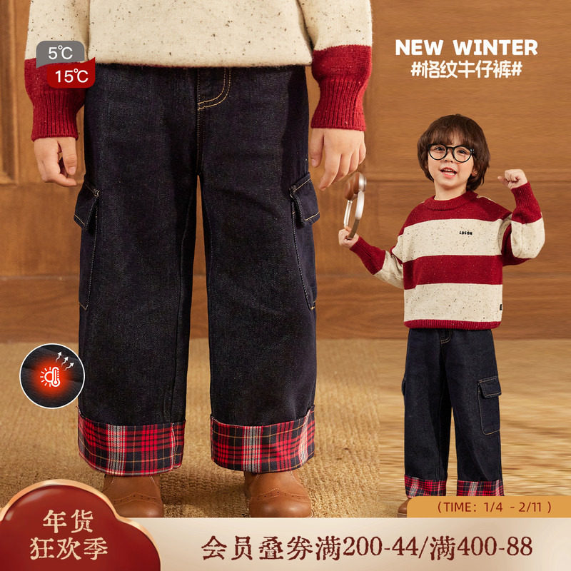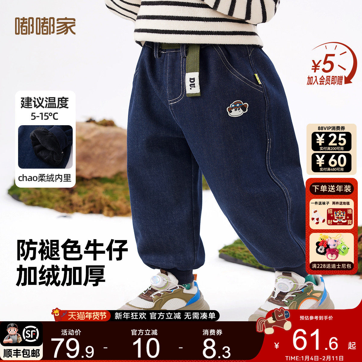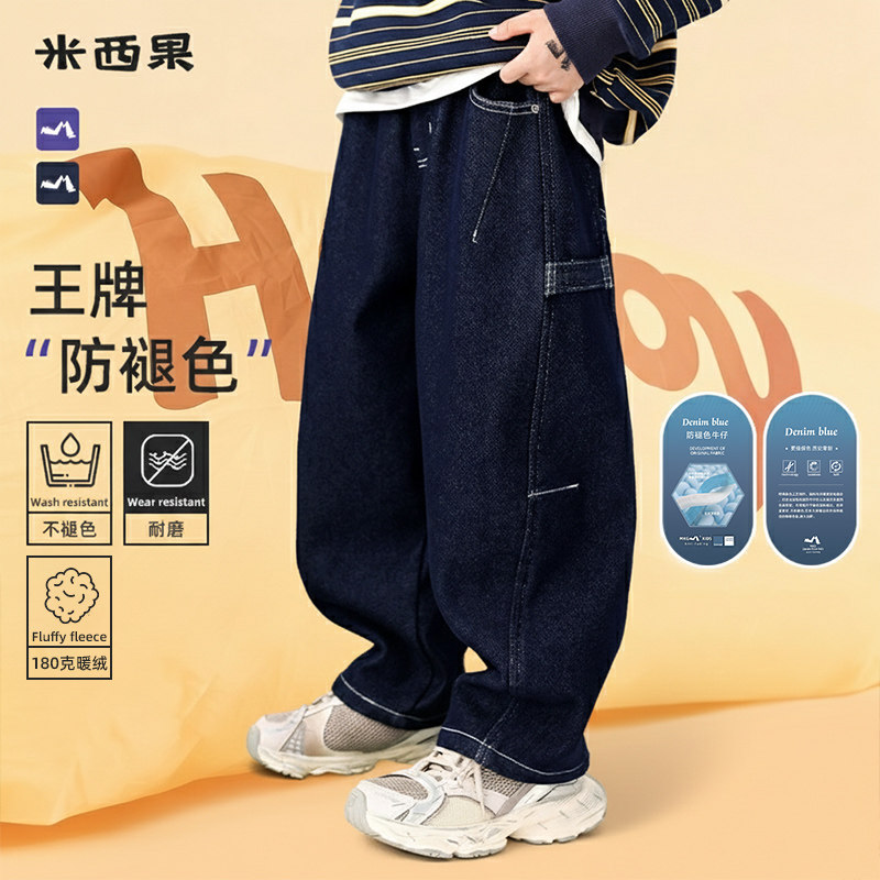 米西果童装2025新款冬装男童加绒裤子儿童牛仔裤男孩冬季长裤男宝