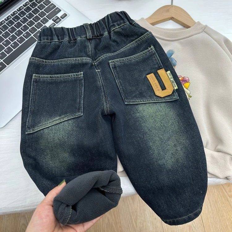 男童加绒牛仔裤秋冬款2025新款时髦儿童一体绒裤子男宝休闲小脚裤