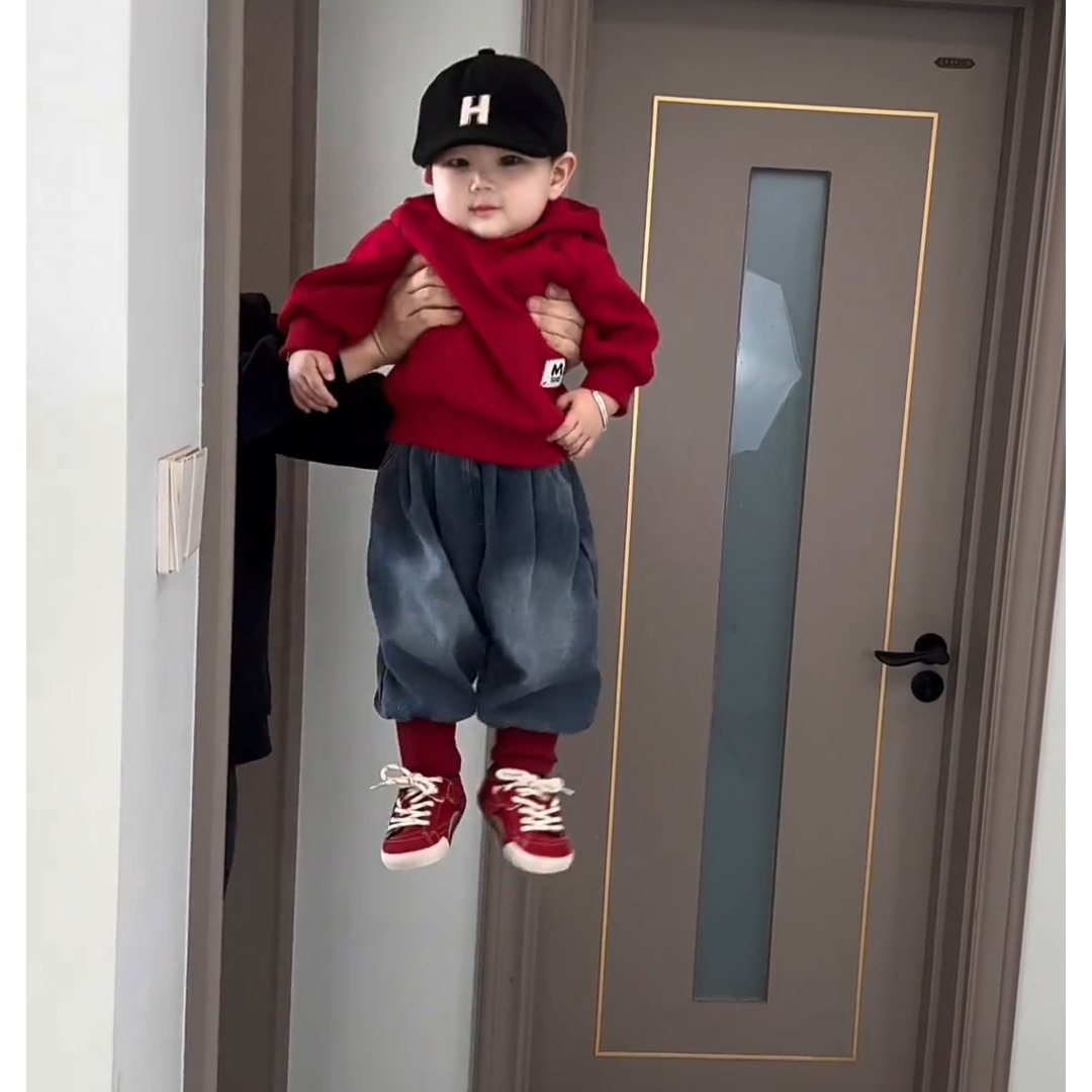 宝宝加绒裤子男宝帅气时髦休闲百搭牛仔裤冬款潮酷男孩加厚直筒裤