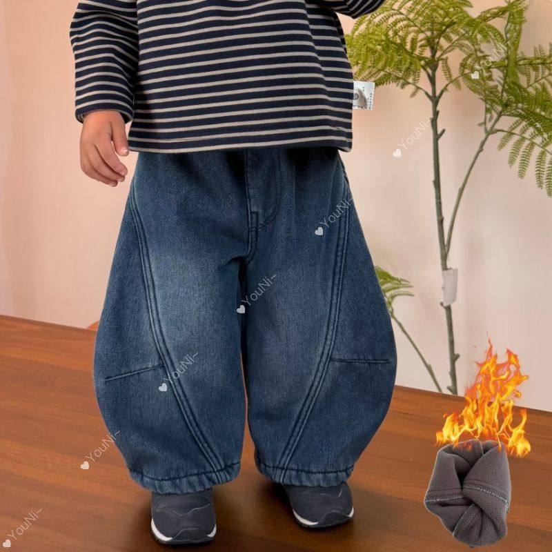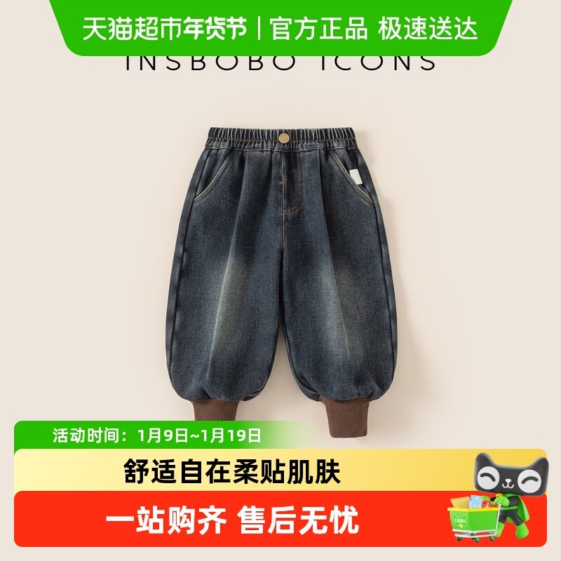 INSbobo男童裤子冬季新款2025儿童加绒帅气牛仔裤男宝保暖冬装潮