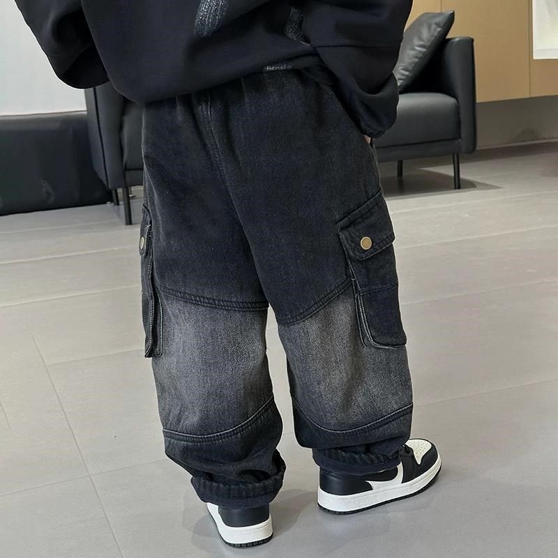 2025冬季新款男宝裤子保暖加绒时尚舒适儿童牛仔裤洋气宝宝工装裤