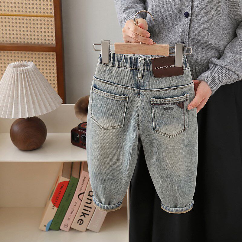 [水洗软牛仔]男宝牛仔裤冬款宝宝裤子儿童长裤加绒女童束脚裤冬装
