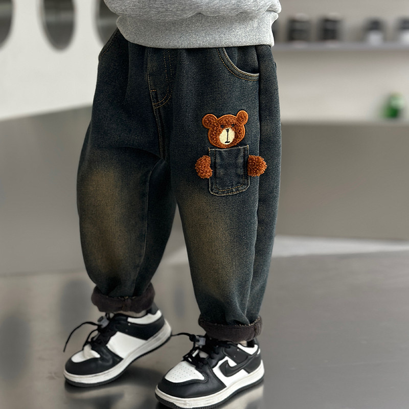 齐齐熊男童牛仔裤加绒裤秋装冬季儿童童装加厚裤子宝宝男宝休闲裤