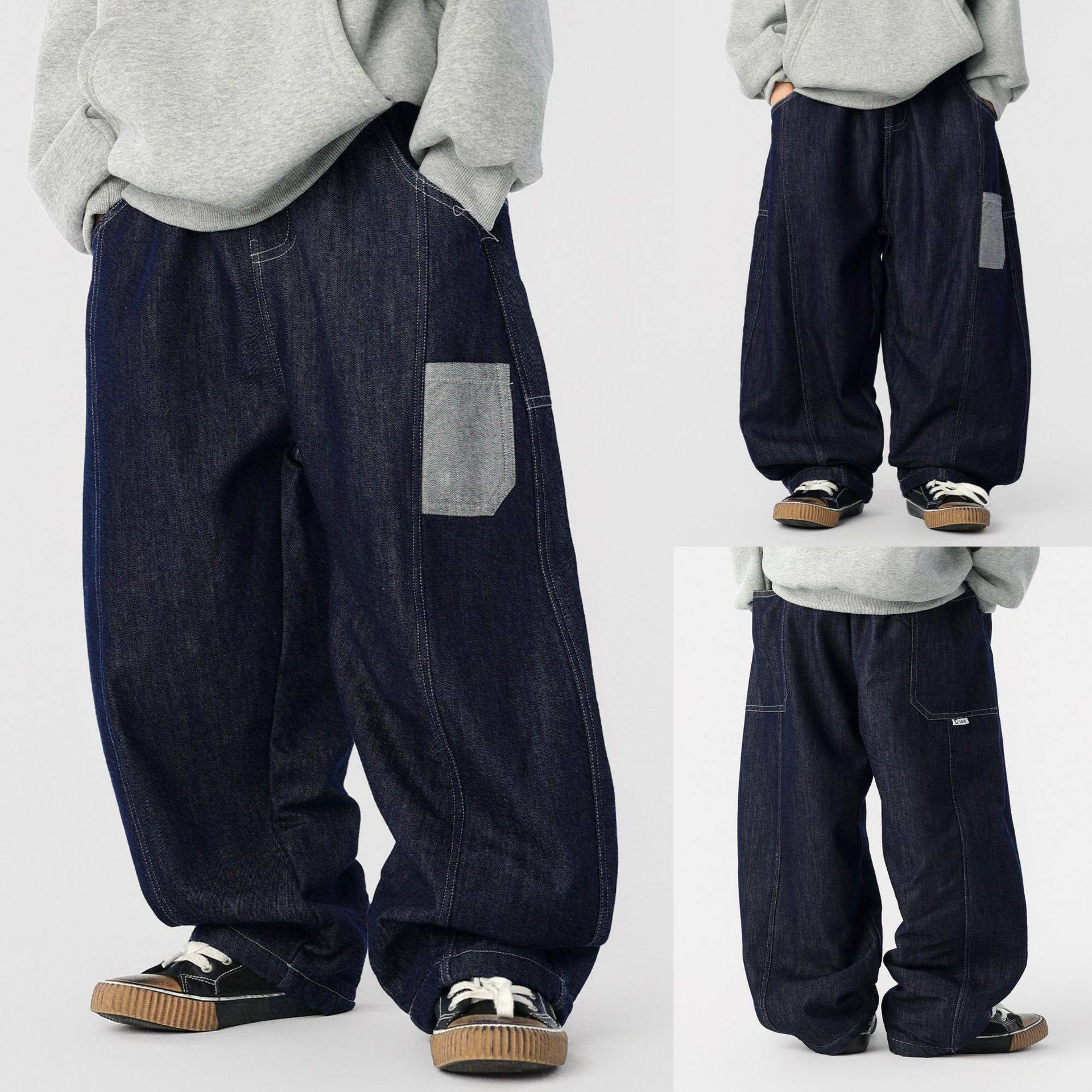 男童女童冬季加绒加厚牛仔裤2025新款弯刀裤拼接时髦简约男宝百搭