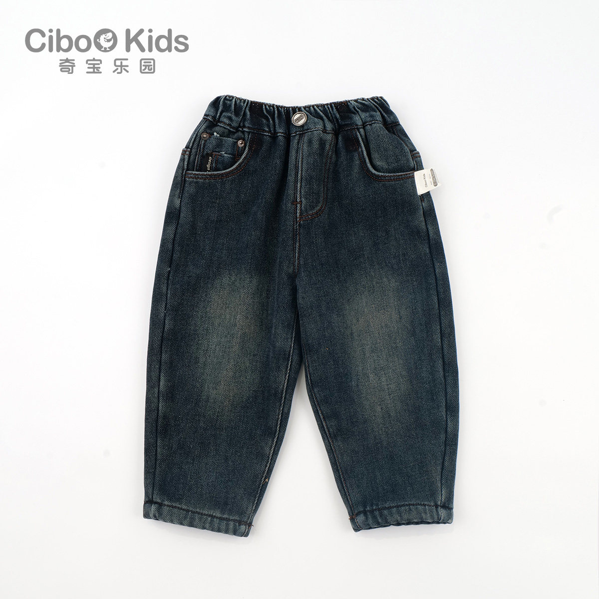 奇宝乐园冬季男童裤子男宝加绒牛仔裤男孩保暖水洗长裤复合奥粒绒