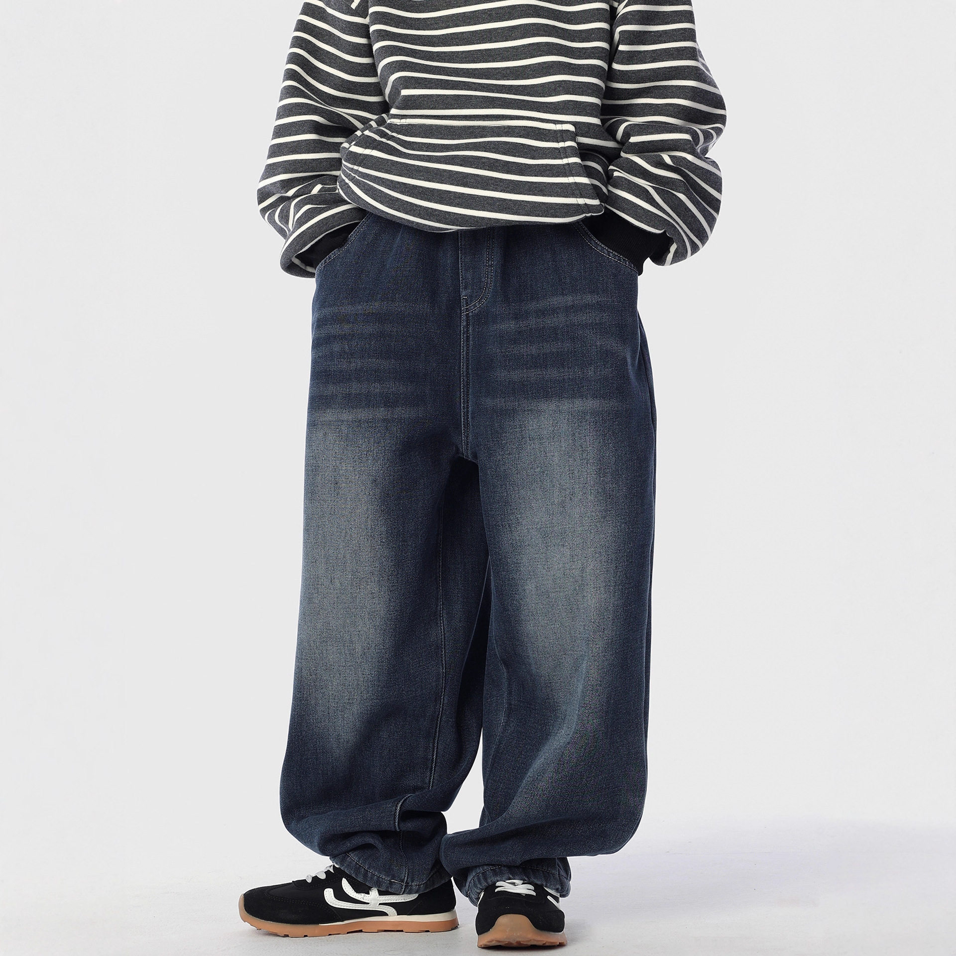 马克华菲2025秋冬季中童小学生男宝加绒加厚牛仔裤水洗直筒耐磨jz