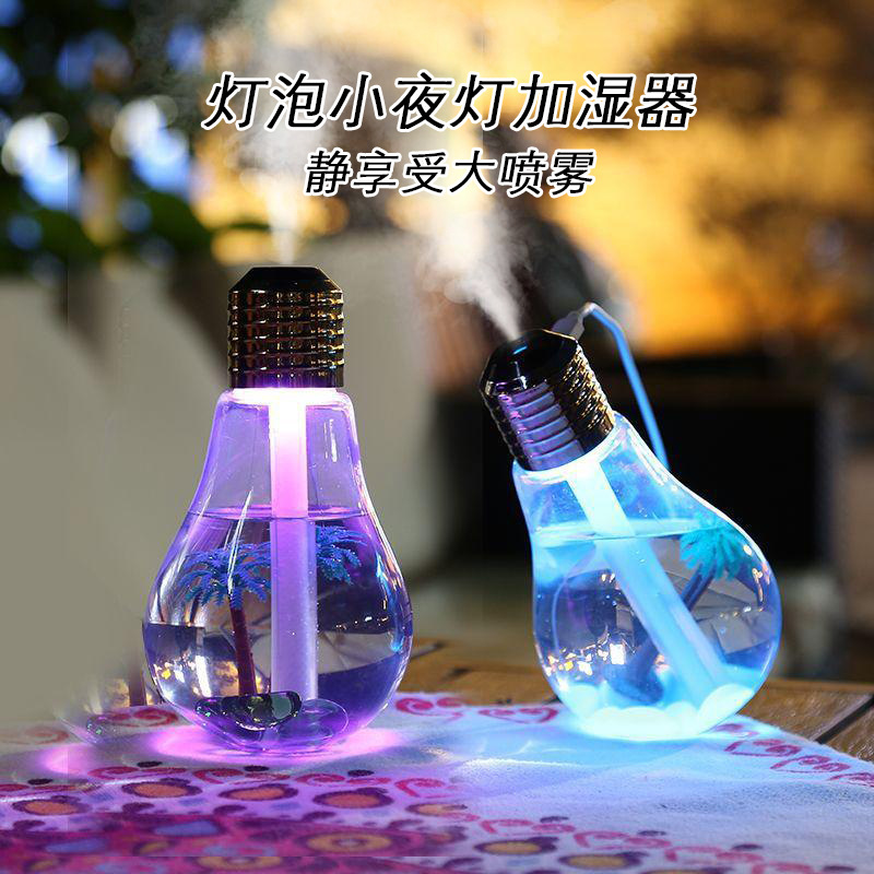 七彩灯泡加湿器 400ml创意加湿器超声波大喷雾USB家用加湿器