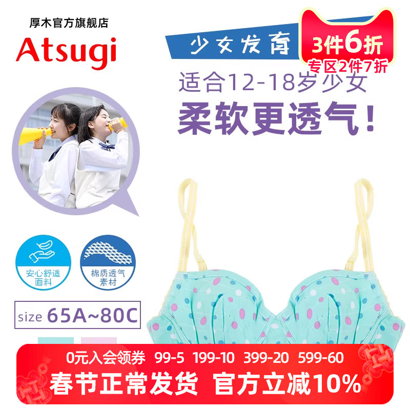 ATSUGI/厚木夏季薄款可爱波点少女文胸内衣舒适软钢圈背后双排扣