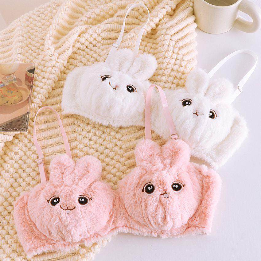 甜美可爱小兔子毛绒文胸套装少女聚拢无钢圈舒适保暖内衣胸罩冬季