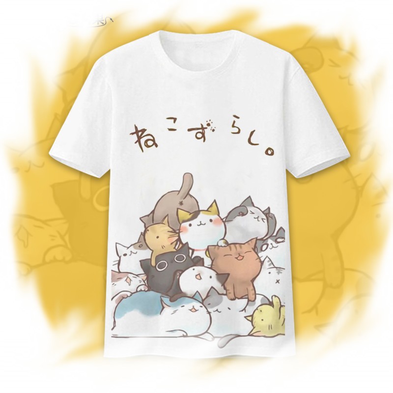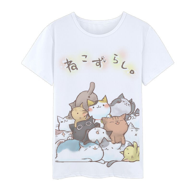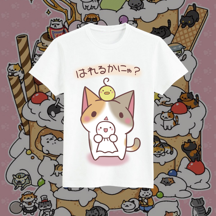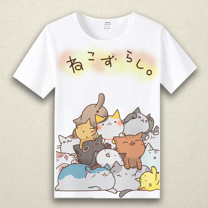 茶猫屋日本动漫周边猫咪后院软妹涤纶牛奶丝短袖T恤新品满百包邮