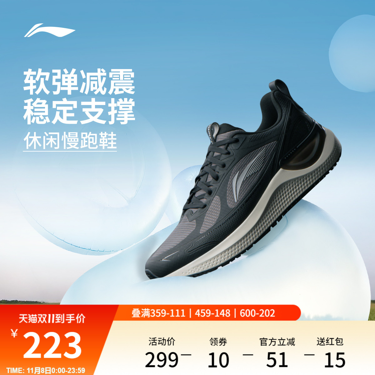 李宁跑步鞋男鞋官方减震耐磨网面轻便透气跑鞋黑色休闲慢跑运动鞋