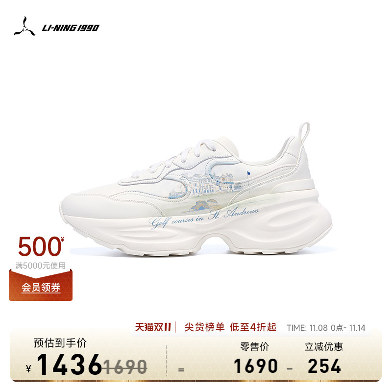 【云裳】LI-NING1990 女士透气休闲厚底跑鞋 李宁1990经典系列