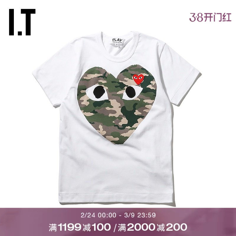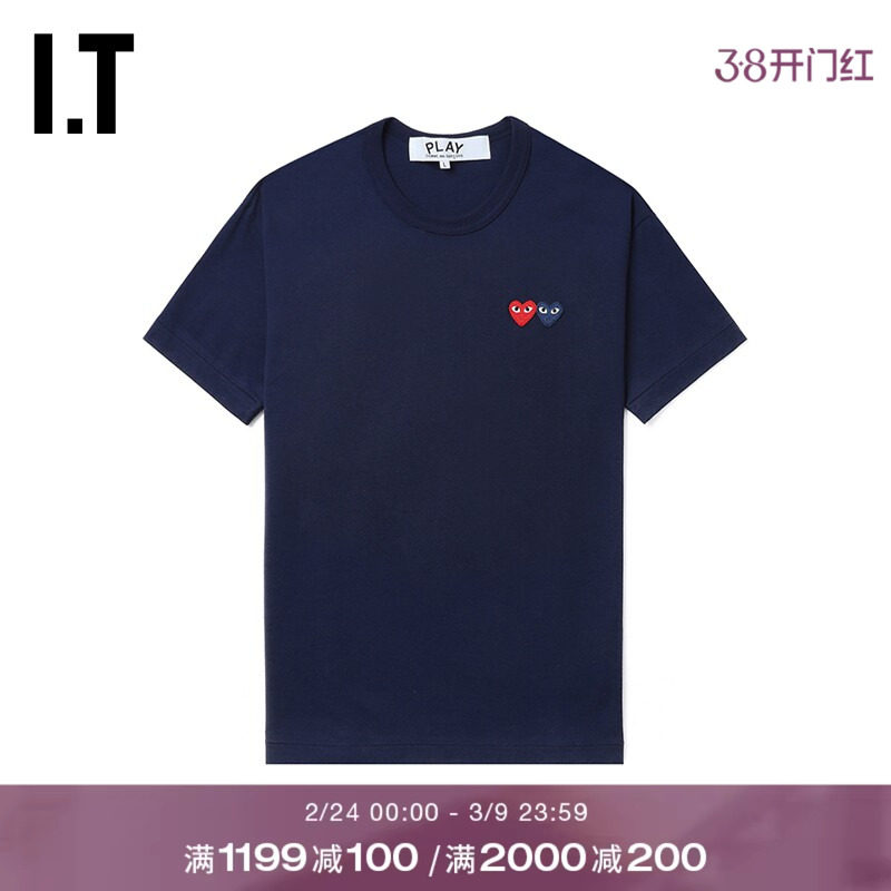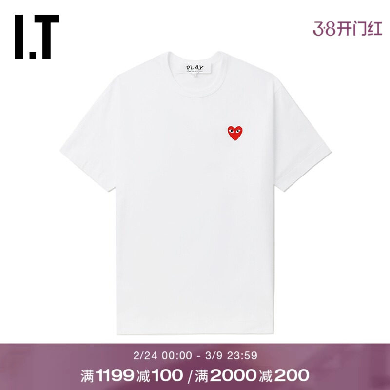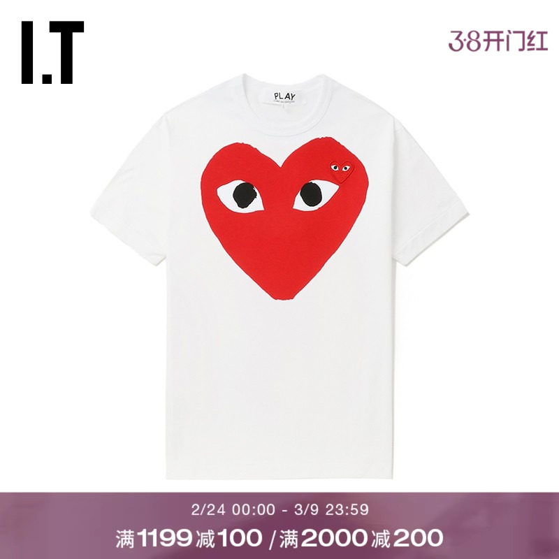 IT CDG PLAY COMME des GARCONS川久保玲情侣爱心logo装饰短袖T恤
