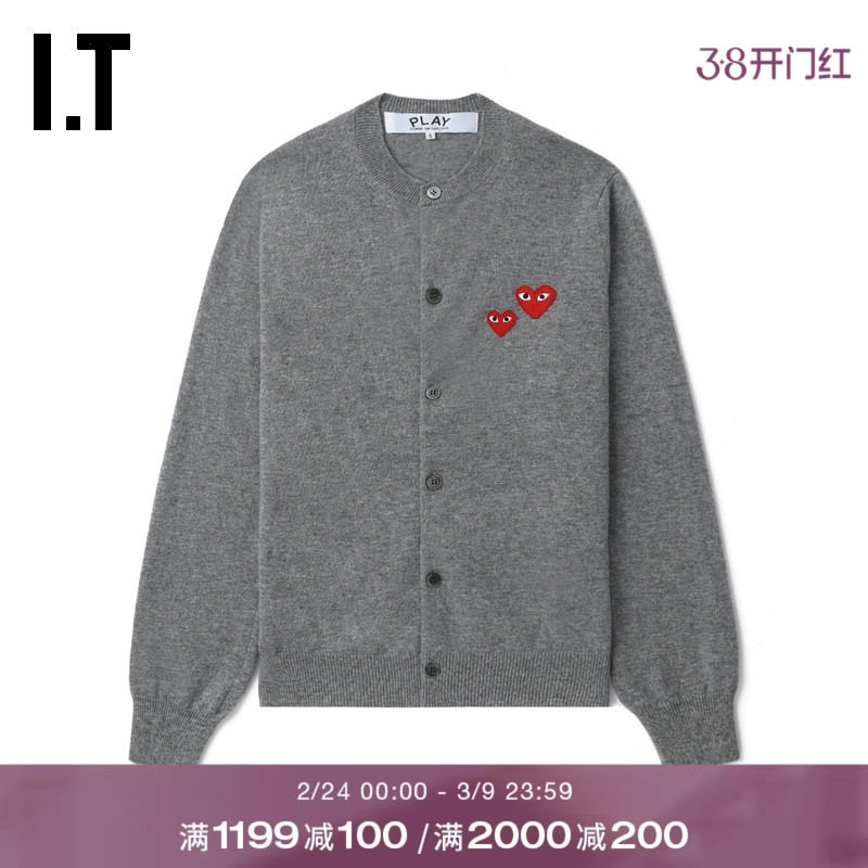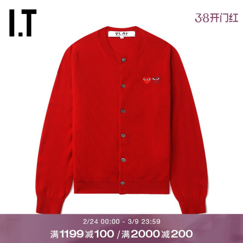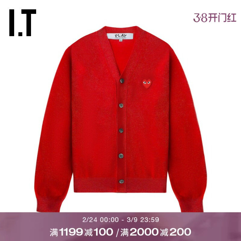 IT CDG PLAY COMME des GARCONS川久保玲情侣款合身羊毛针织开衫