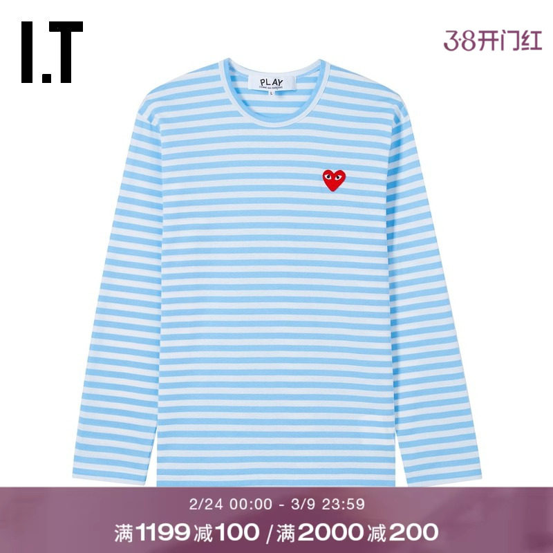 IT CDG PLAY COMME des GARCONS川久保玲情侣条纹长袖T恤清爽时尚