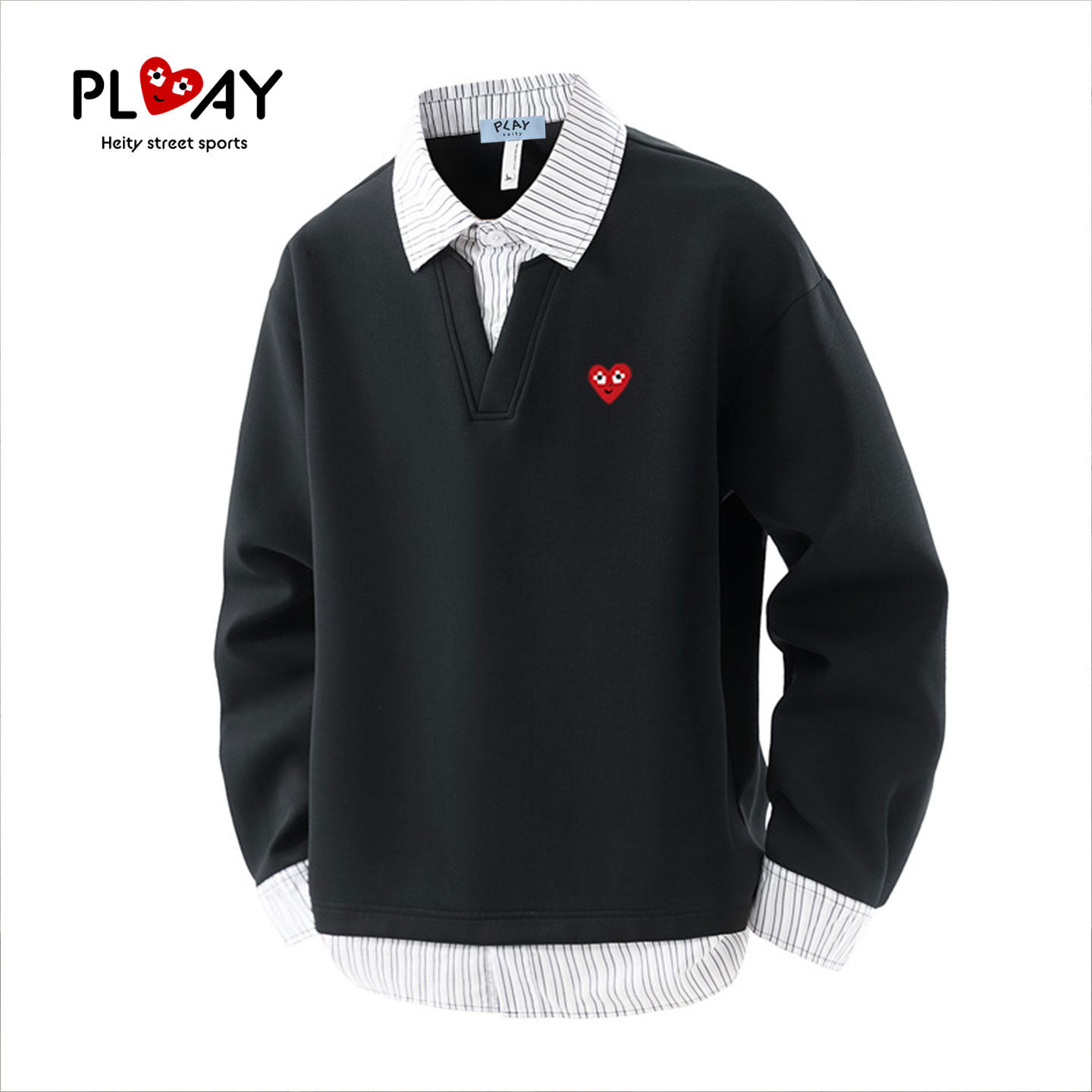 PLAY HEITY 官方卫衣秋季新款假两件翻领潮牌男女款百搭宽松上衣