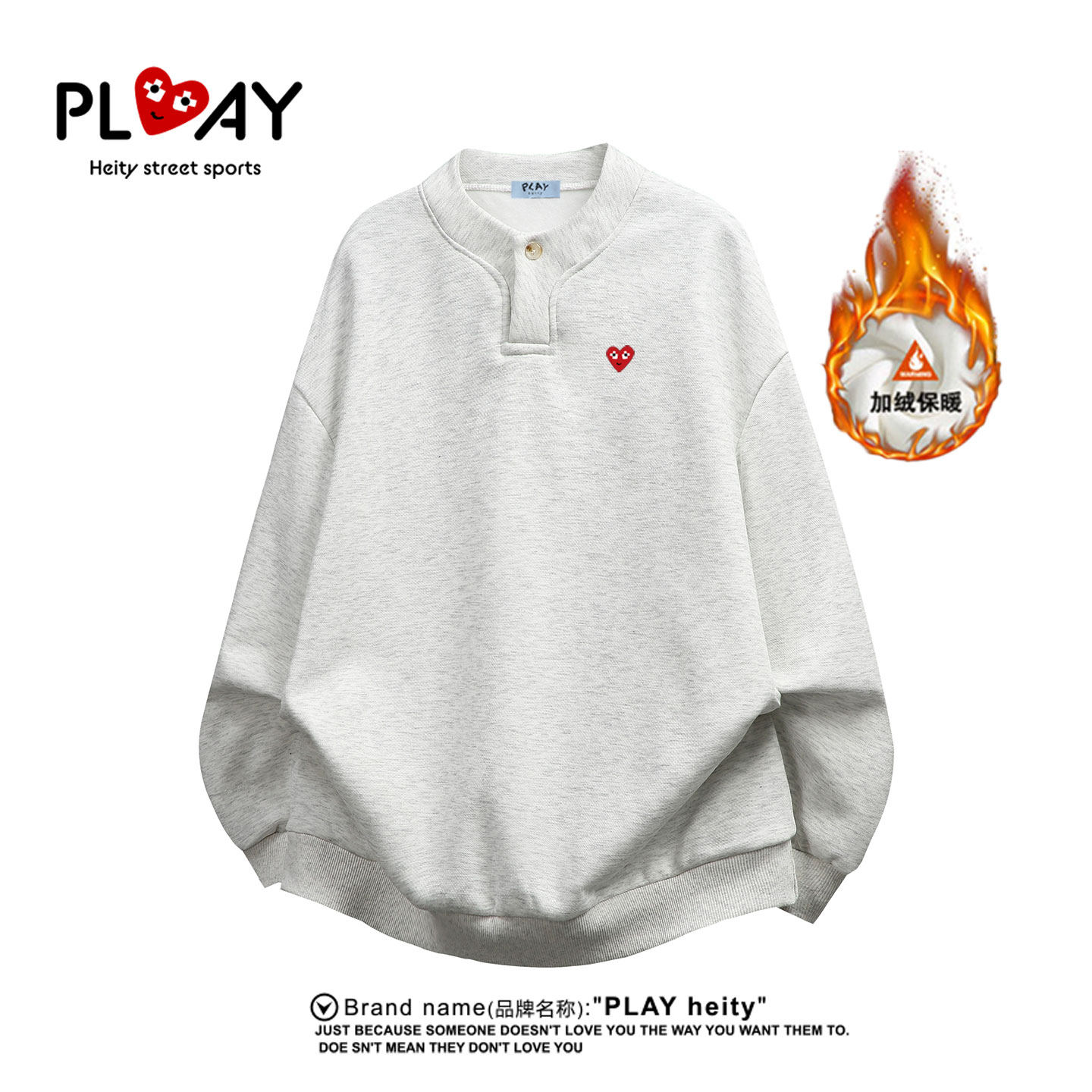 PLAY HEITY 官方冬季新款加绒加厚亨利领宽松休闲男女款百搭卫衣