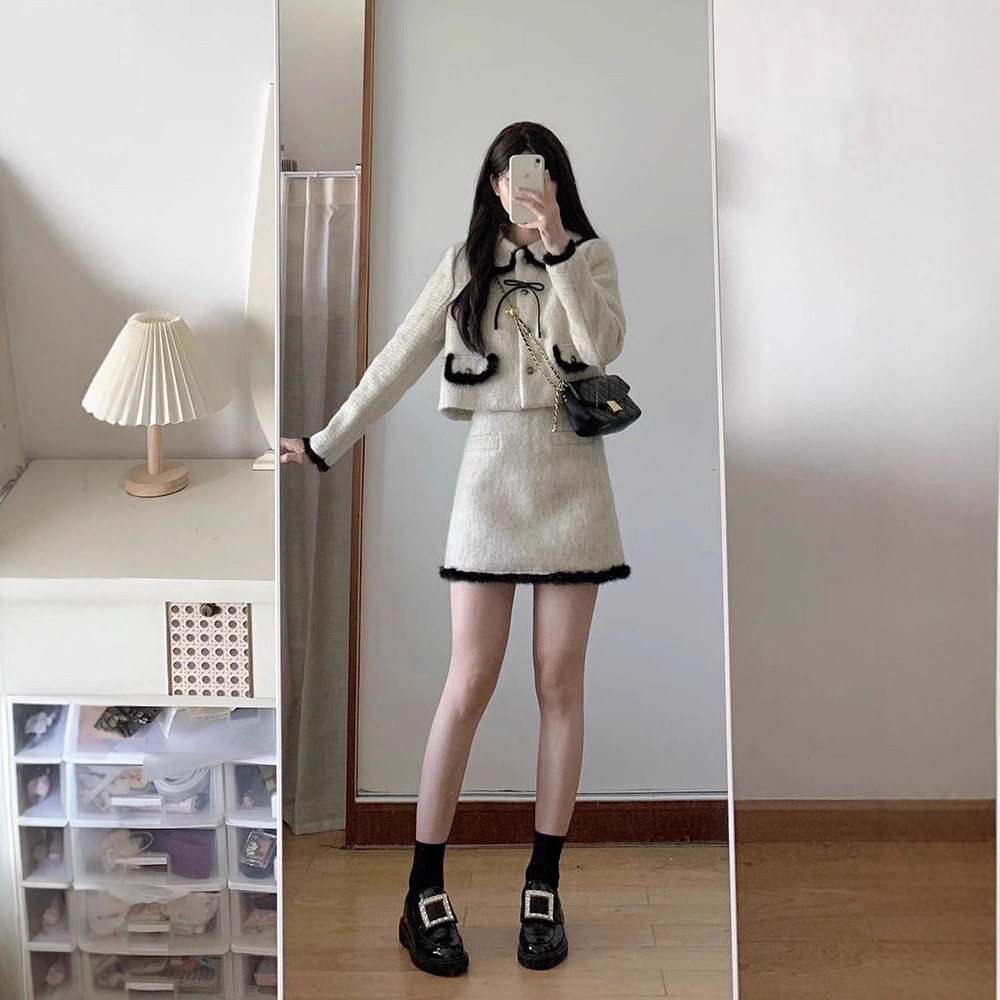 小香风毛呢短裙套装女秋冬装韩系女主氛围感穿搭富家千金风两件套