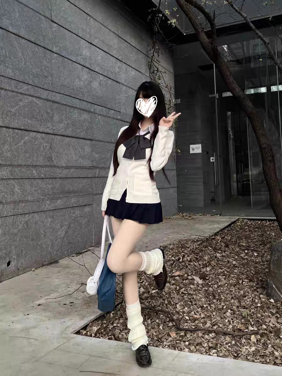 原创jk制服学院风校供感白色开衫毛衣叠穿百褶短裙套装女秋冬套装