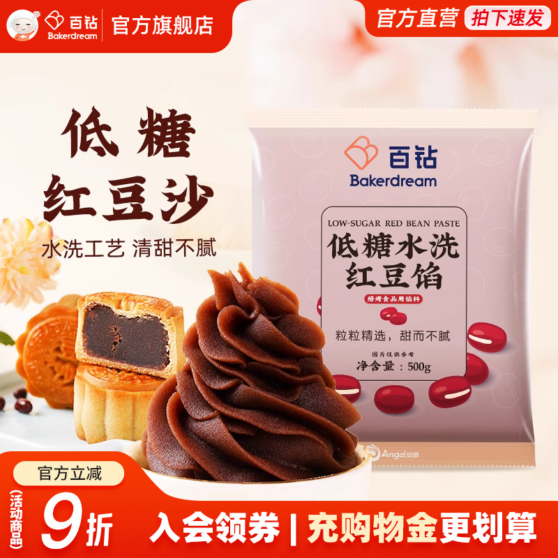 安琪百钻低甜水洗红豆沙馅料500g家用红豆沙蛋黄酥月饼汤圆馅泥