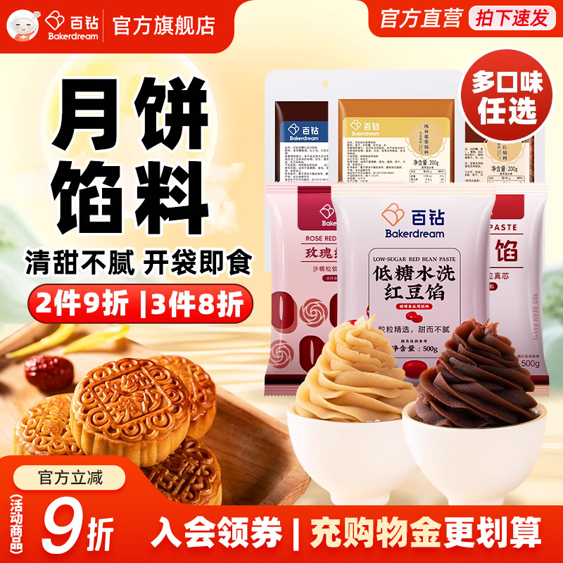 低糖月饼馅料红豆沙馅奶黄莲蓉枣泥五仁家用冰皮流心包子烘焙材料