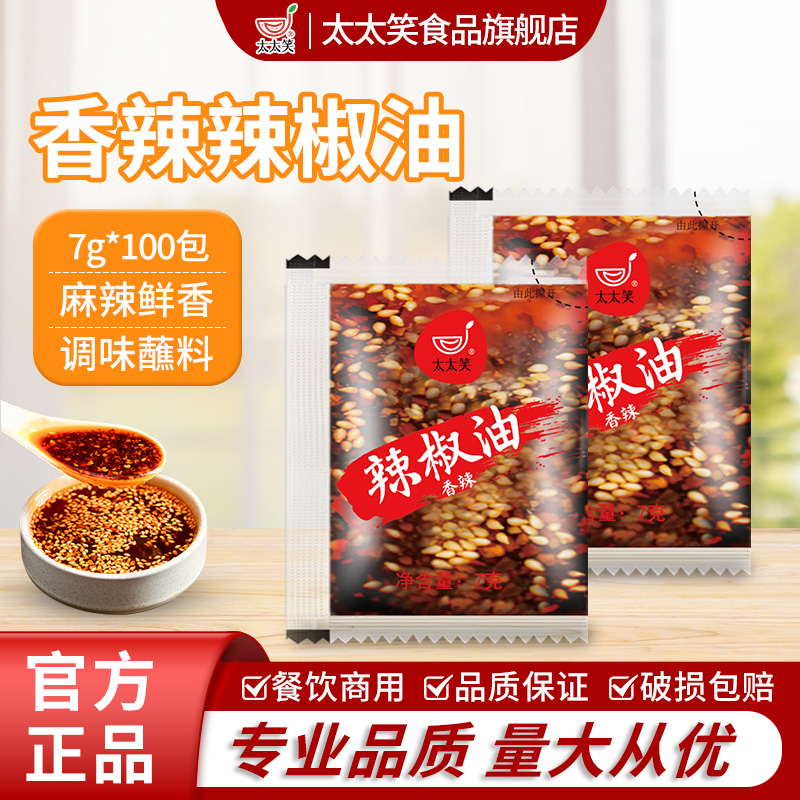 太太笑香辣辣椒油7g*100包外卖包装商用家用饺子调料陈醋辣子袋装