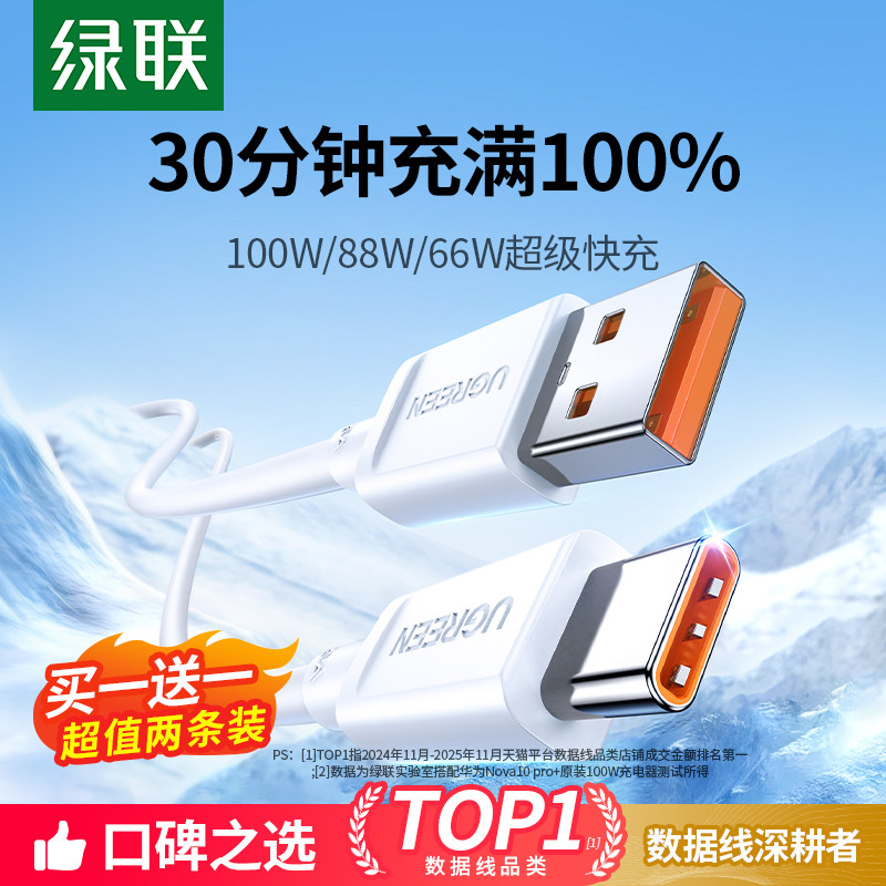 绿联type-c数据线快充适用华为充电线荣耀小米安卓Mate80Pro编织usb转typec66w充电线typec车载6a闪充数据线