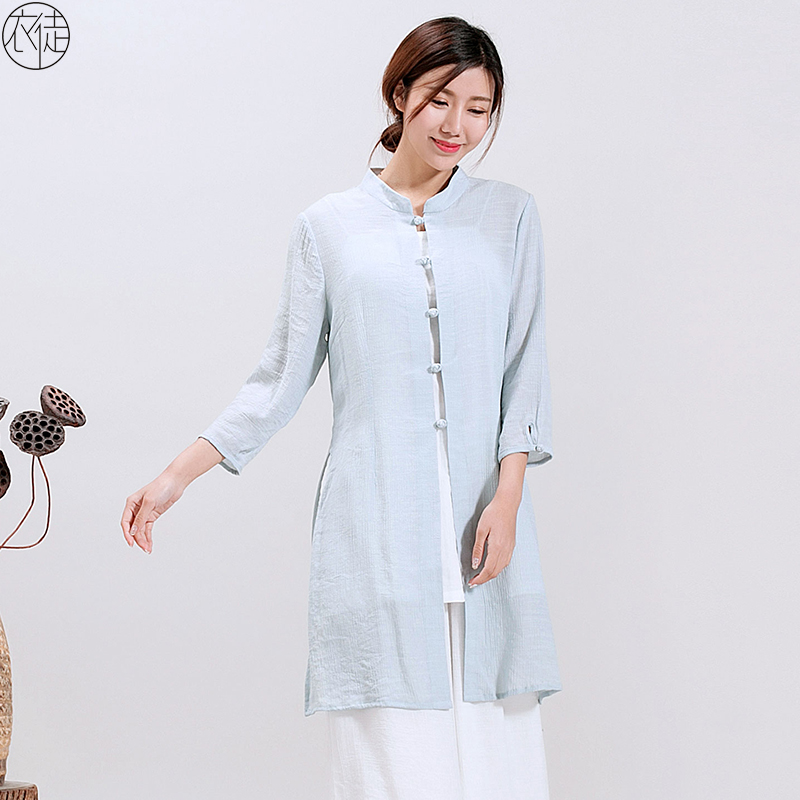 衣徒唐装女夏长袖外套中式服装开衫中国风盘扣上衣中长款文艺茶服
