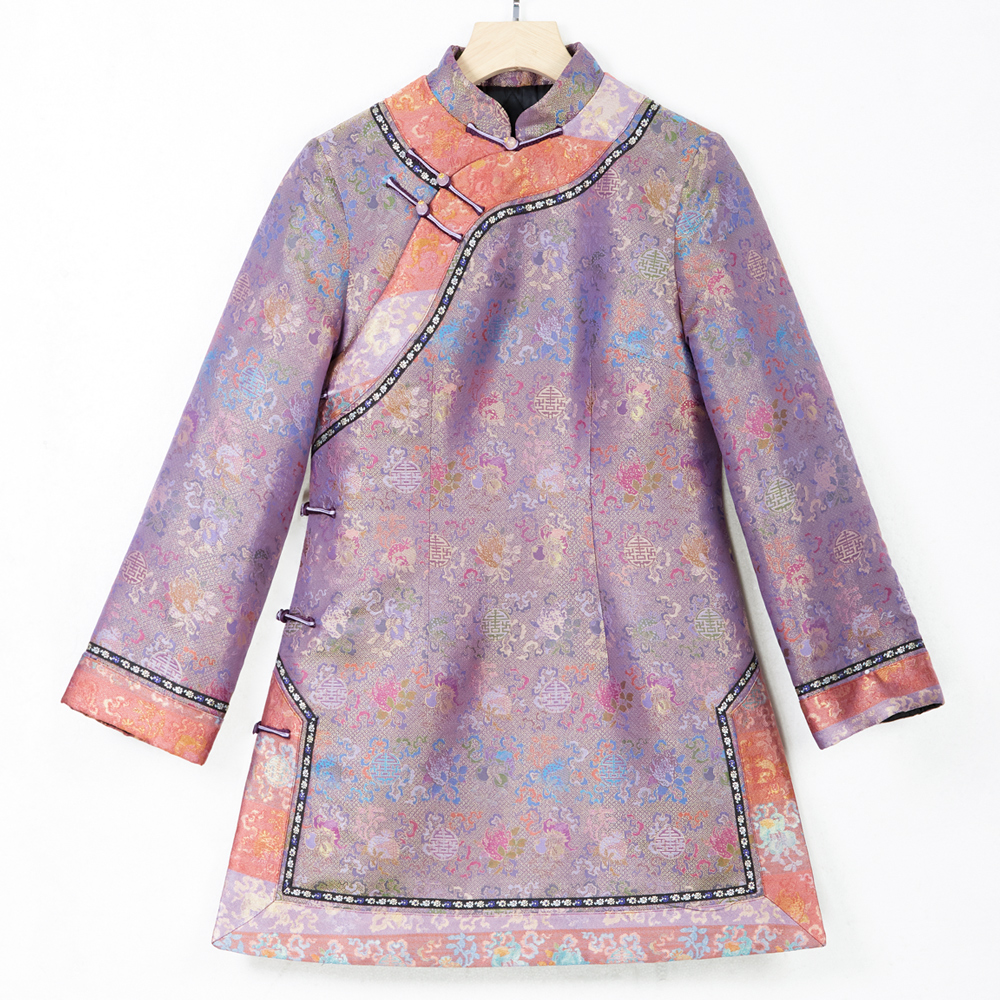 华族经典唐装女外套中式优雅通勤长袖夹棉加厚旗袍棉服棉衣中长款