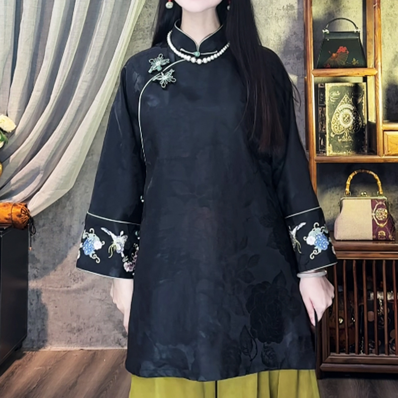 新中式春秋新款中长款上衣女2025气质刺绣显瘦唐扣中国风节日唐装