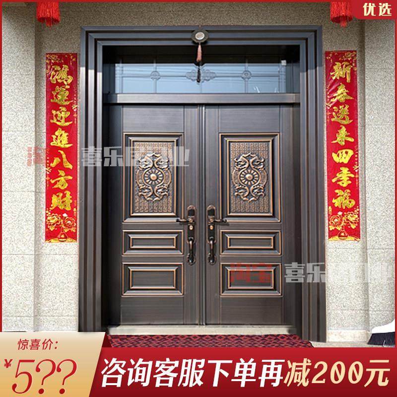 乡村别墅大门双开门锌合金入户门对开门进户防盗门农村自建房大门