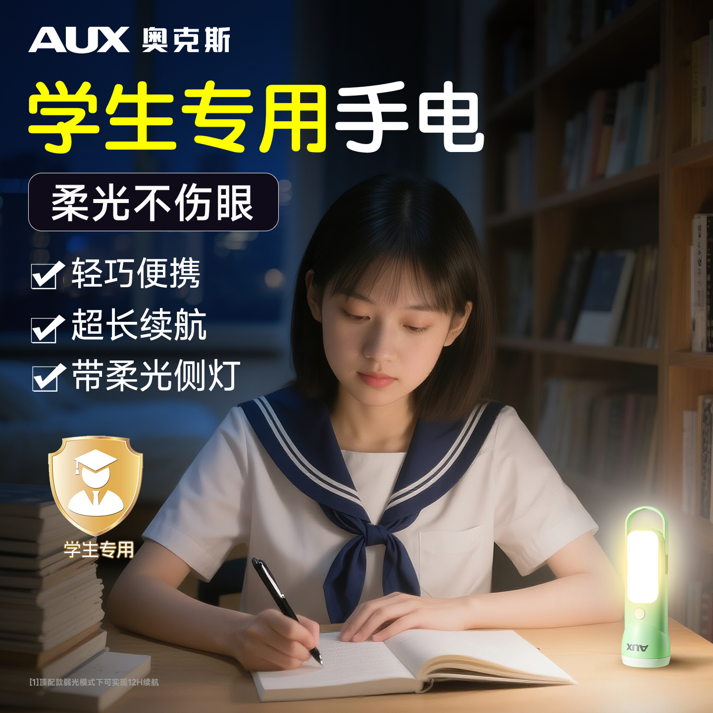 奥克斯小手电筒便携学生宿舍护眼看书住校儿童不伤眼长续航可充电