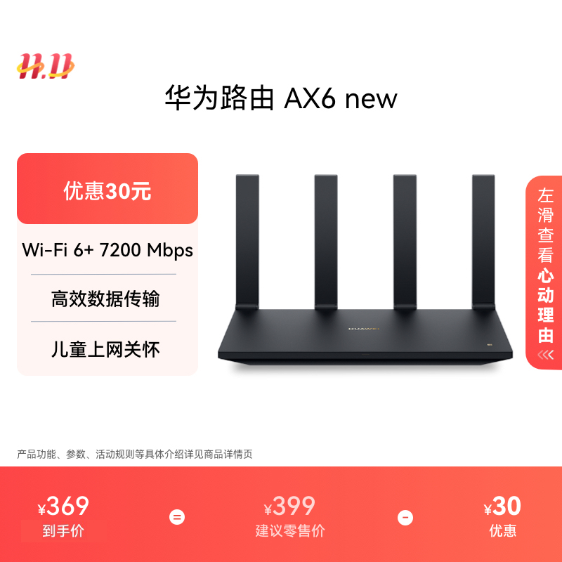 华为路由器AX6 new WiFi 6+双倍穿墙家用官方正品高速上网7200 Mbps全屋wifi路由器信号强全屋覆盖大户型光钎