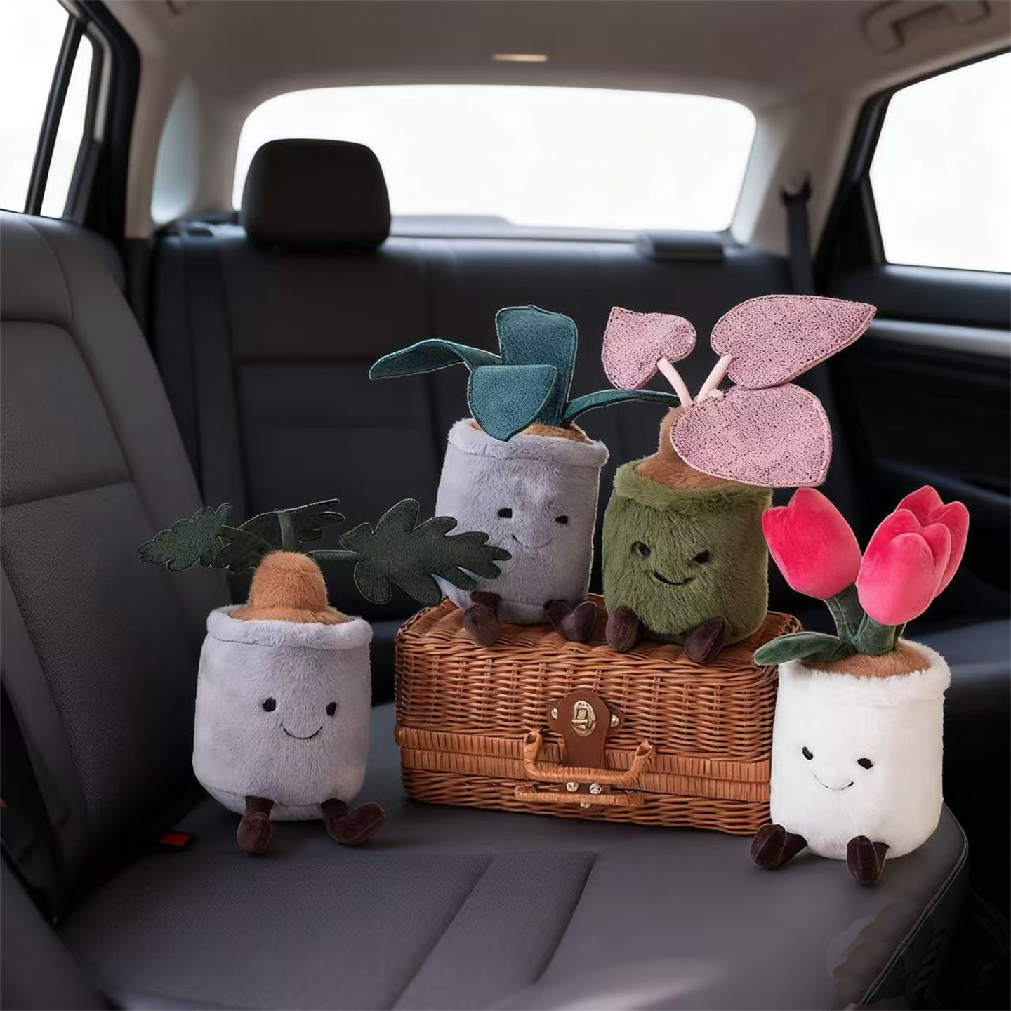 办公室空气净化新宠郁金香毛绒玩具桌面摆件汽车竹炭包公仔除甲醛
