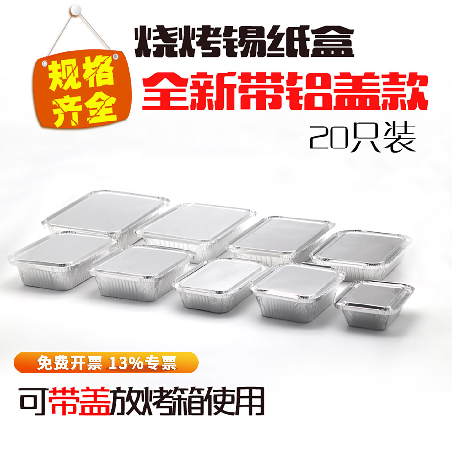 烧烤锡纸盒加厚打包烤箱空气炸锅方形烘培烤箱长方形带纯铝盖20只