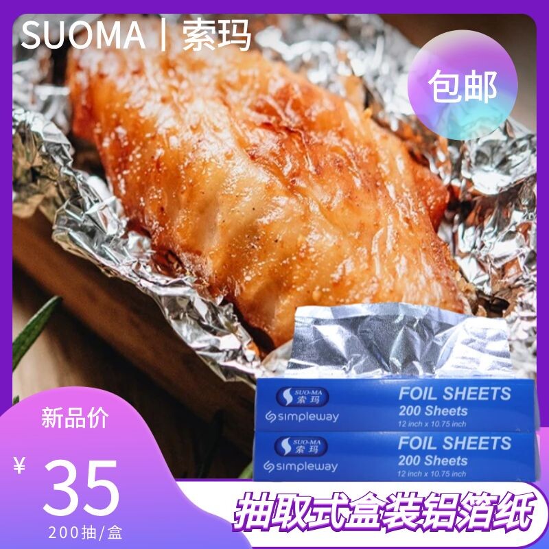 SUOMA索玛抽取式锡纸片空气炸锅专用铝箔纸家用烧烤盘烘培烤箱用