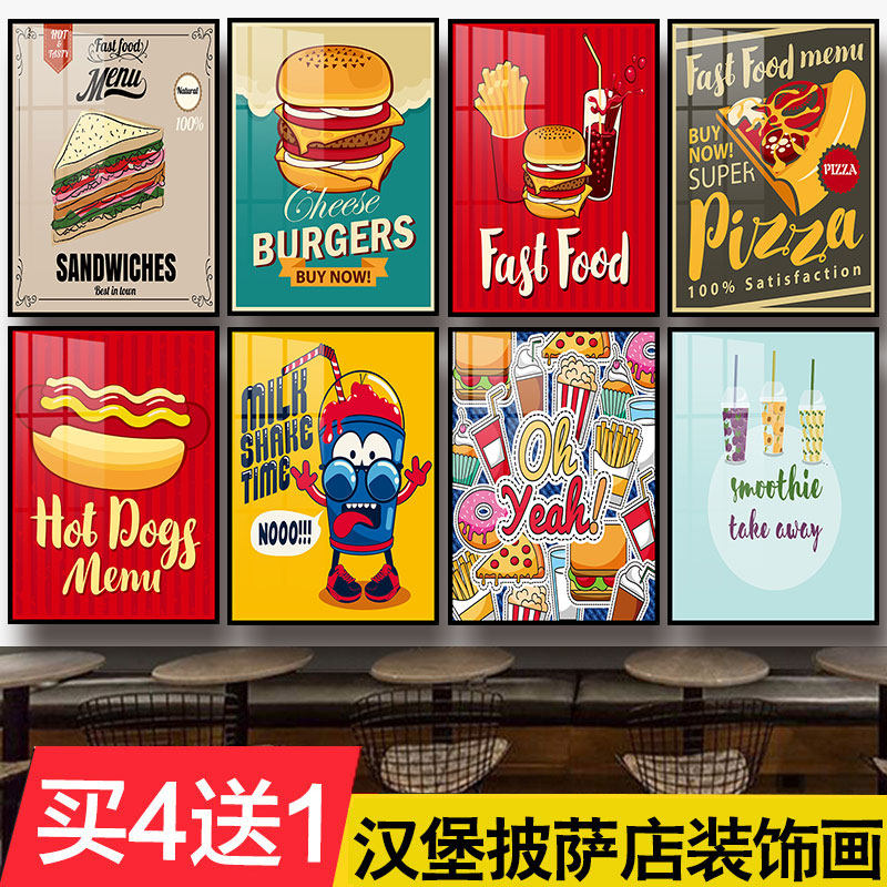 汉堡店墙面创意装饰画立体海报挂件饮品个性壁画披萨店装饰品挂画