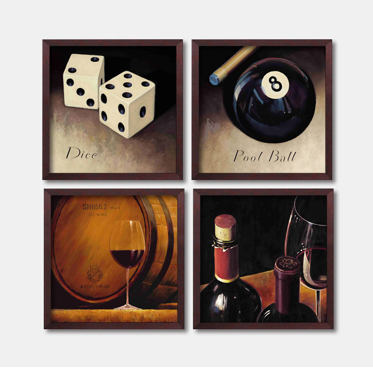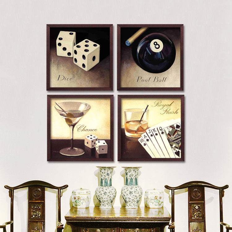 麻将馆棋牌室挂画酒吧装饰画创意台球墙画个性壁画复古怀旧有框画