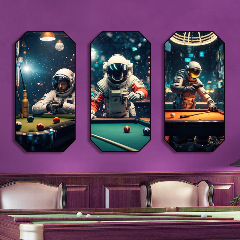桌球室挂画台球厅斯诺克俱乐部创意宇航员装饰画娱乐会所个性壁画