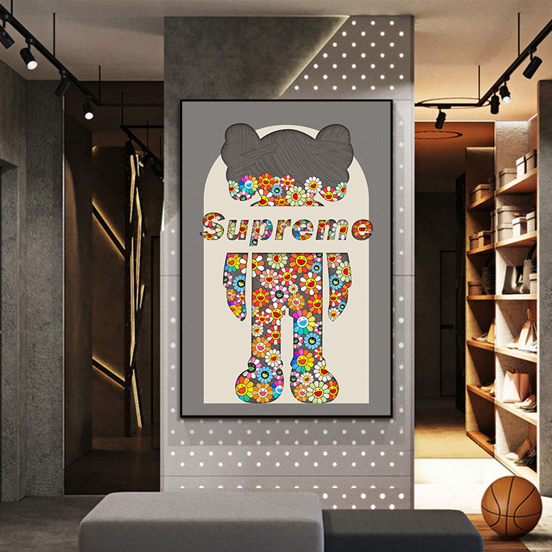 暴力熊装饰画客厅Kaws潮牌太阳花个性壁画北欧风卧室高级轻奢挂画