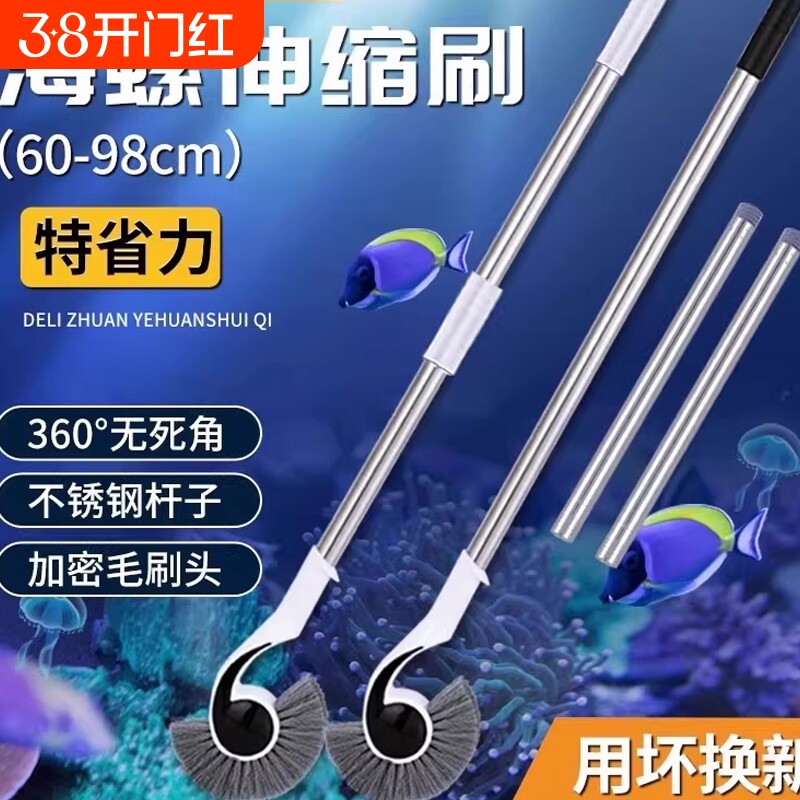 森森鱼缸刷子清洁长柄鱼缸清理工具无死角海螺刷海马刷擦清洗神器