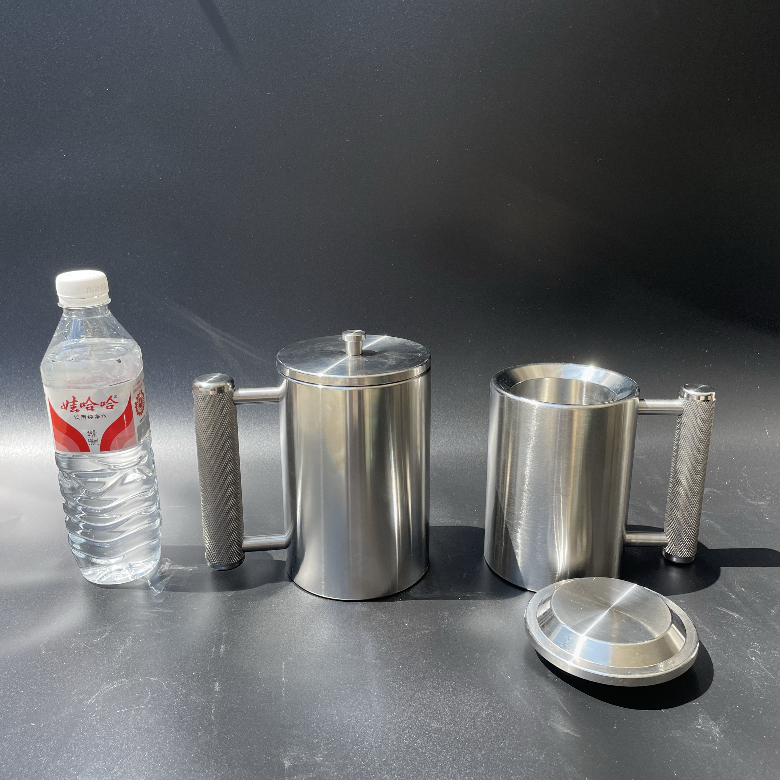 304不锈钢哑铃杯杯盖咖啡法压壶户外泡茶壶打奶泡便携手冲咖啡杯
