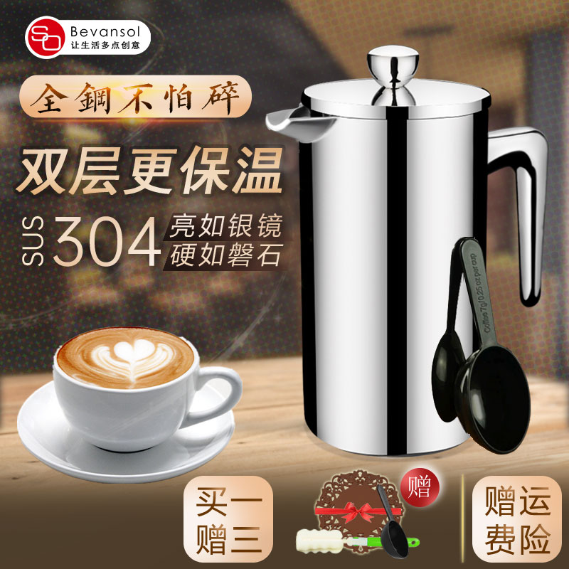 缤享欧式不锈钢咖啡法压壶双层家用手冲法式滤压壶冲茶器隔热保温