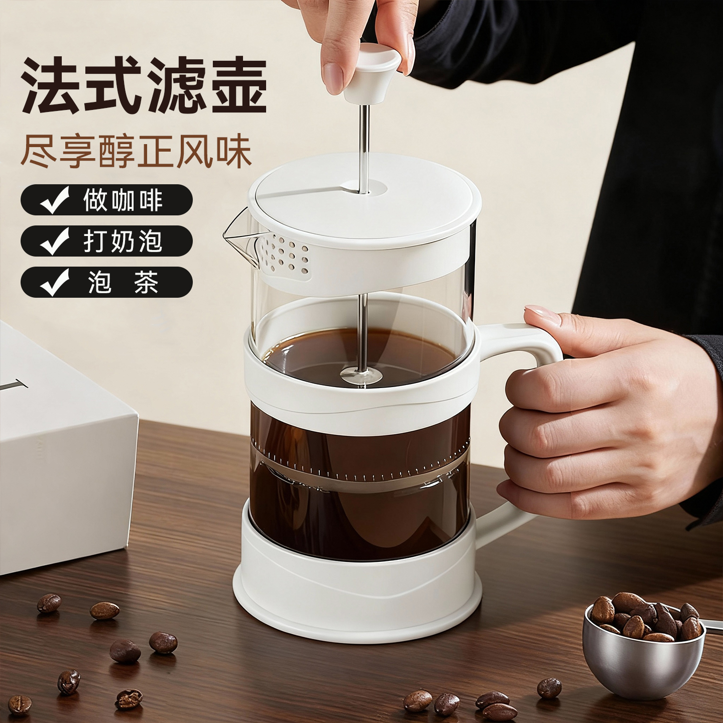 捷安玺咖啡法压壶家用手冲滤压壶打奶泡煮咖啡壶过滤式器具泡茶壶