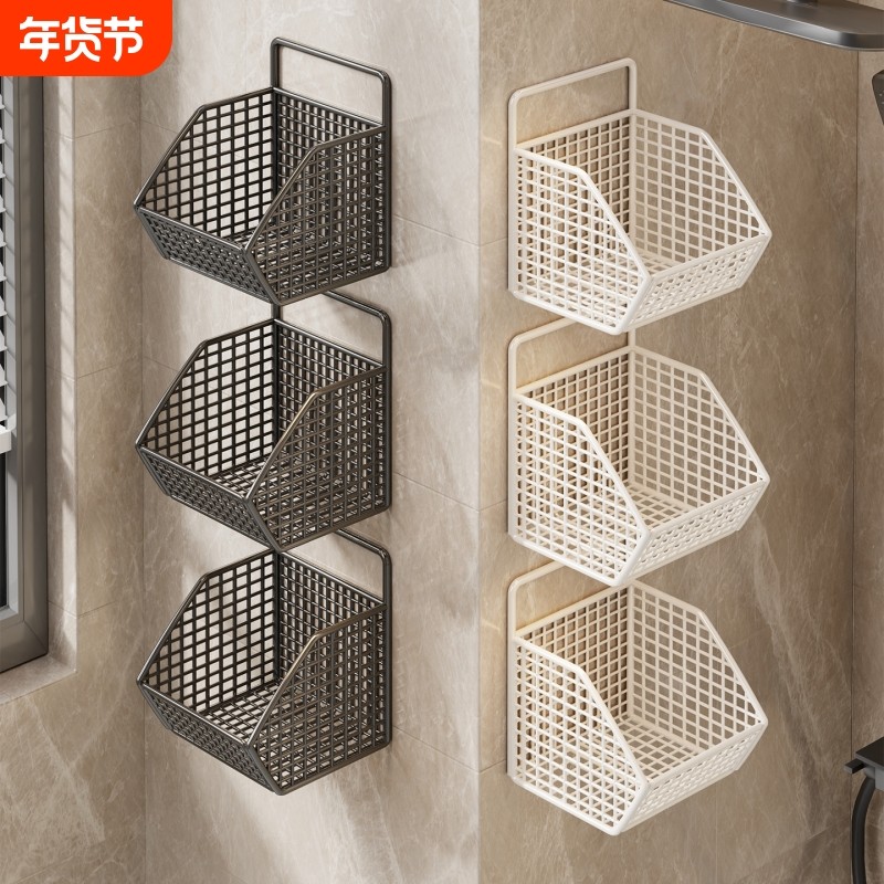 卫生间置物架免打孔浴室转角架多功能家用厕所收纳架分层铁艺网格