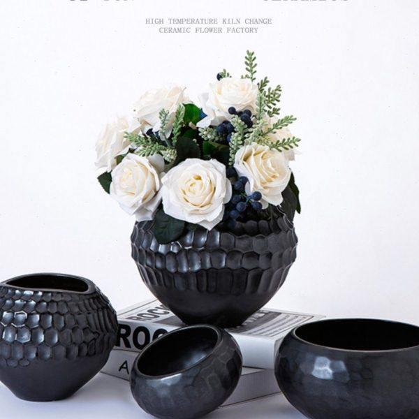 极简黑白现代圆球面立体多肉小花盆陶瓷花瓶干花器样板房摆件饰品