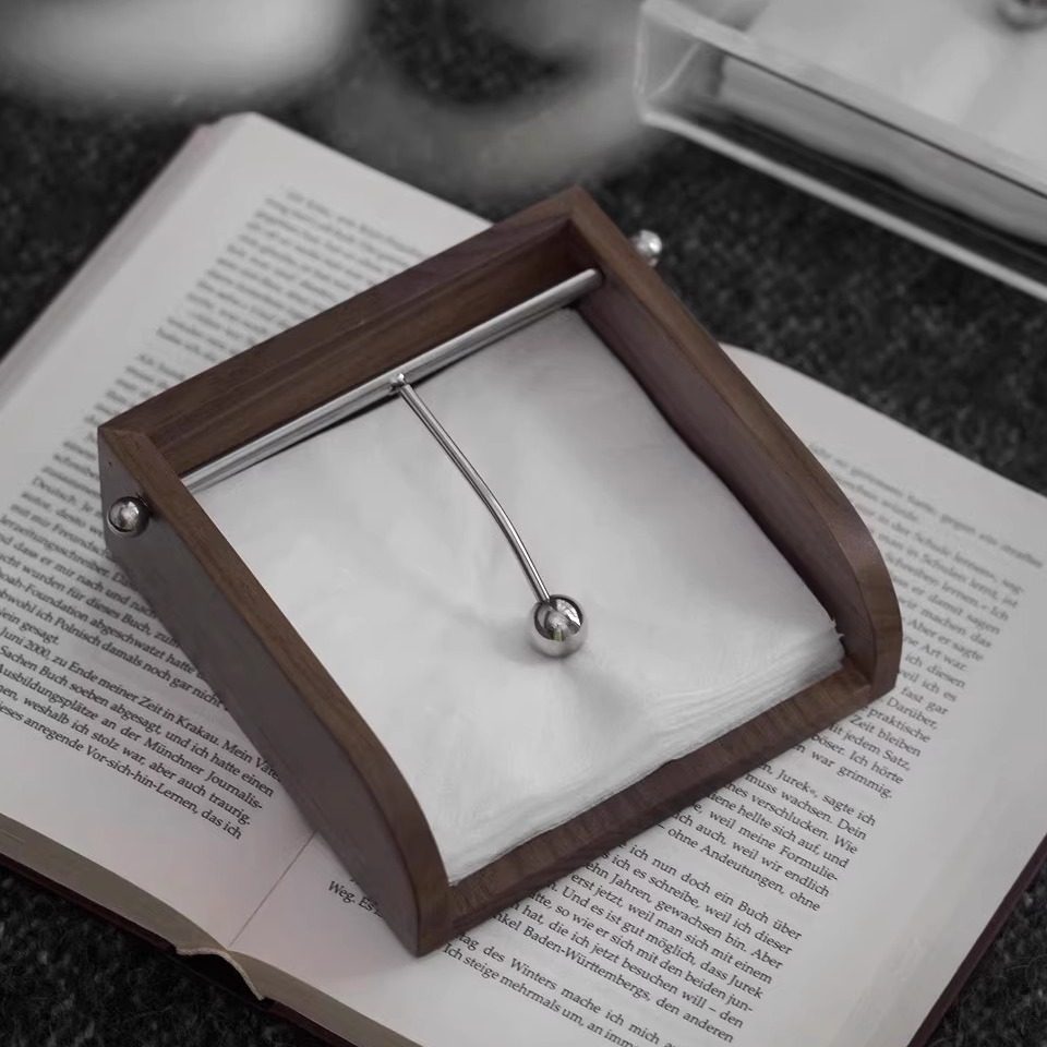 现代简约样板房装饰品摆件餐桌高端木质压纸器纸巾盒不锈钢压纸器