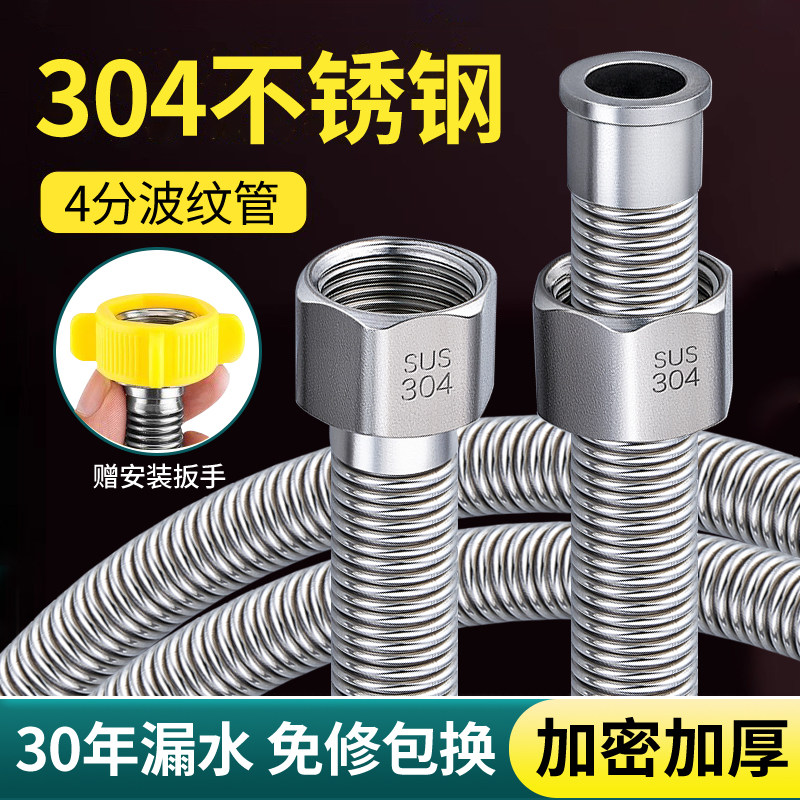 304不锈钢波纹管燃气热水器冷热进水软管4分金属防爆隔热家用水管