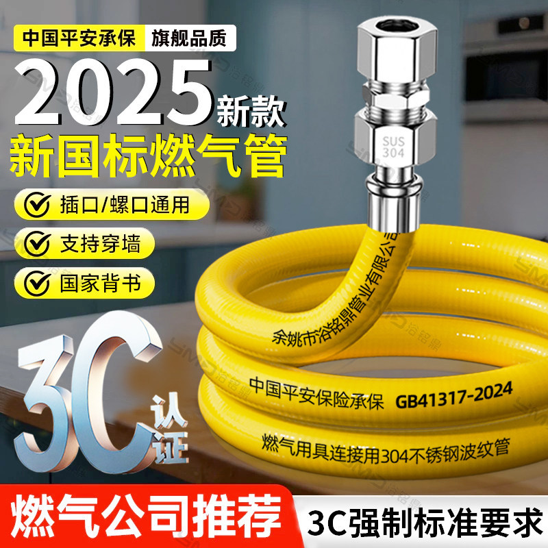 2025新国标燃气管天然气软管304不锈钢波纹管煤气灶防爆专用连接