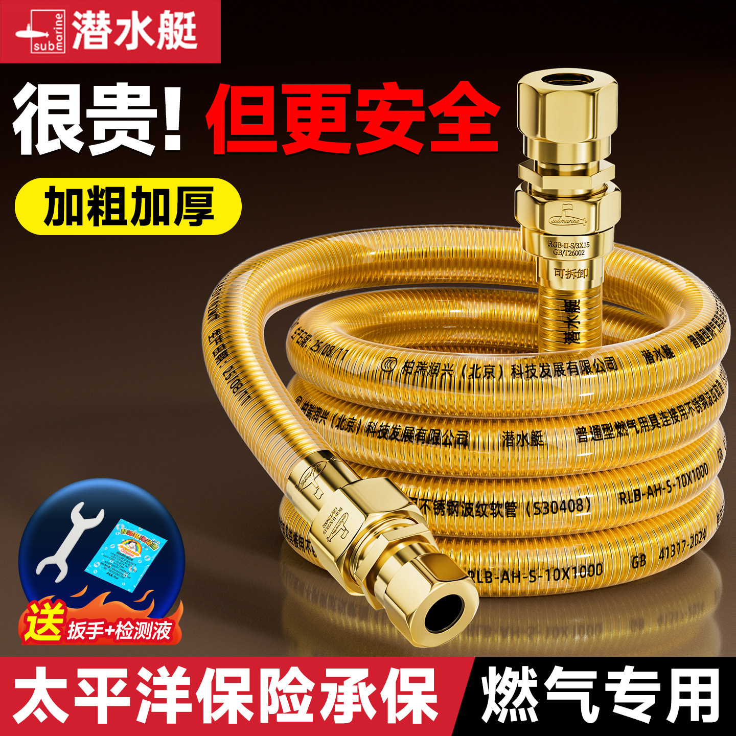 潜水艇燃气管304不锈钢波纹家用专用防爆天然气软管子2025新国标